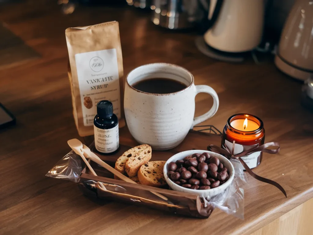| Coffee Lover | Adults | $15–$30 | Mug, coffee, syrup, biscotti, candle |
