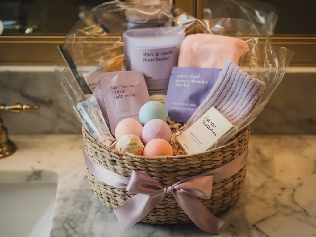 Choose a pretty basket or a reusable tote that can double as storage later. Fill it with a scented candle in a spring fragrance like lavender or citrus, a face mask or sheet mask set, a small bottle of hand cream, bath bombs, a cozy pair of socks, and a bar of artisan chocolate. A mini journal or an inspirational book adds a thoughtful finishing touch.