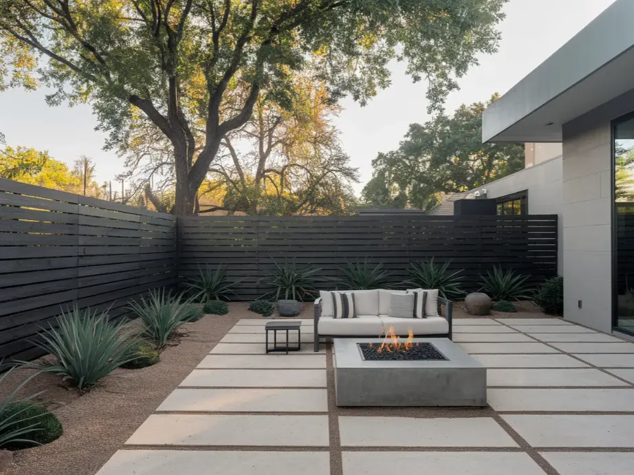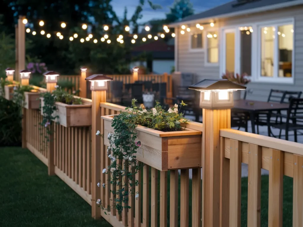 Low-voltage LED lights mounted on fence posts or along the top rail add ambiance and safety after dark. Solar-powered post cap lights are the easiest to install since they don’t require any wiring. Recessed lights between fence boards create a dramatic glow effect that makes your patio feel like a resort.