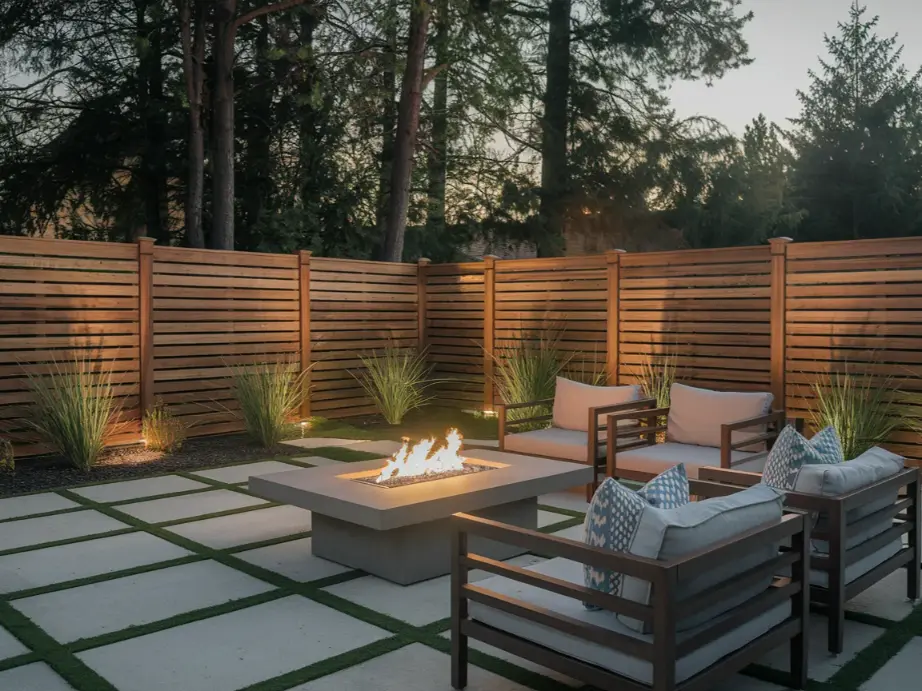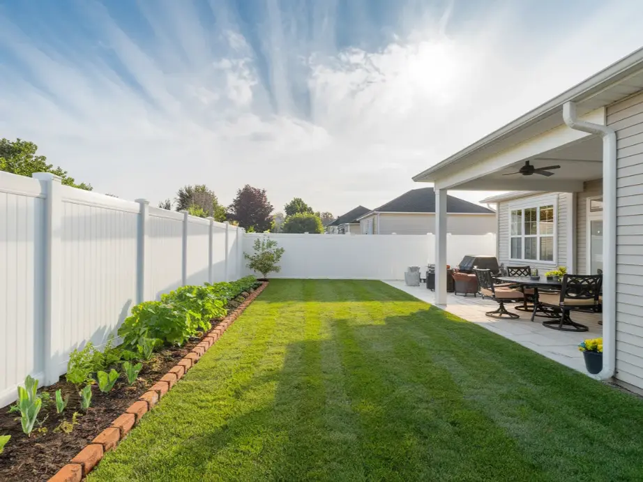 Match the fence to your house. A rustic cedar fence looks right at home behind a farmhouse-style living room. A sleek horizontal composite fence belongs behind a modern or mid-century home. A classic vinyl privacy fence works well with traditional suburban architecture. When the fence feels like it belongs, the whole property looks more cohesive and intentional.
