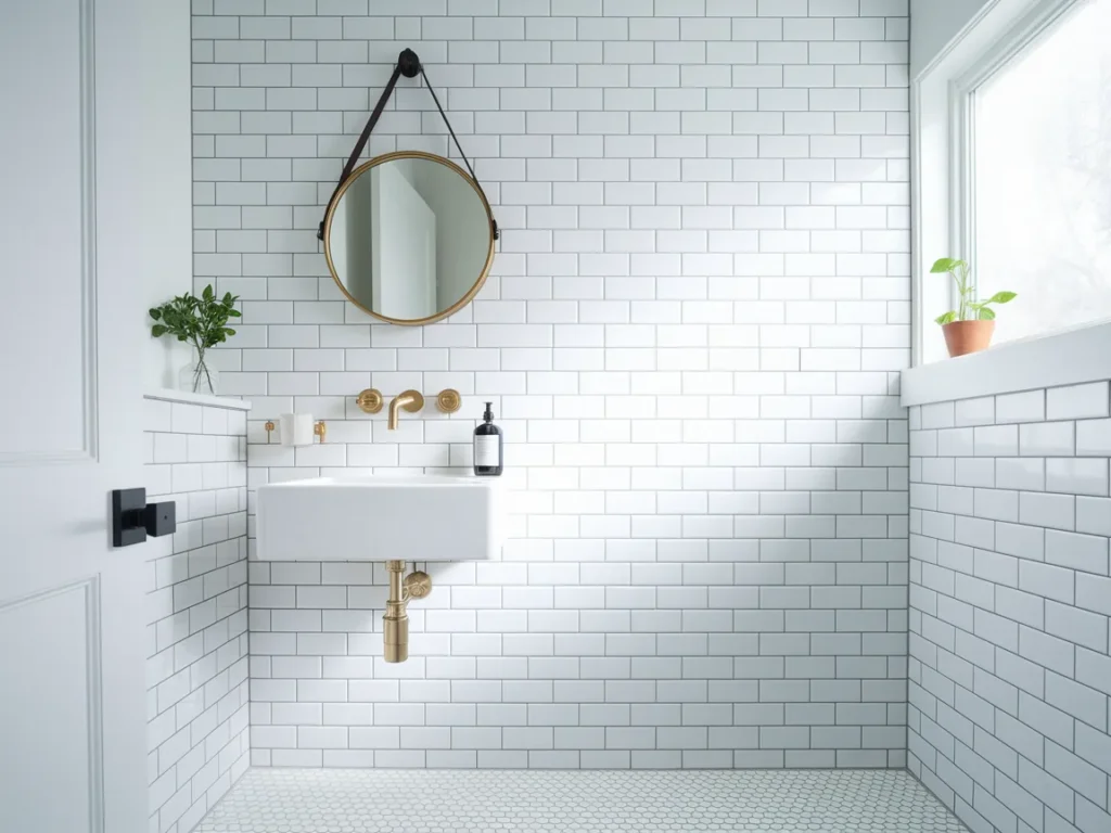 Subway tile in a herringbone pattern is a classic choice. White marble look-alikes add a luxe feel without the price tag. Hexagon tiles are trendy and fun. The key is to pick one pattern and keep it simple — in a small space, too many patterns can make things feel busy.