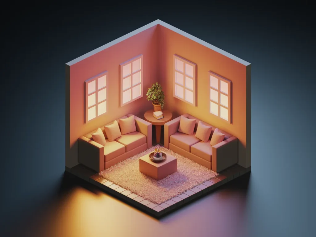 A realistic living room needs clean spacing, matching furniture sizes, and consistent lighting. Use rugs to define zones and keep furniture aligned with the center of the room. Add small details like lamps, framed art, and plants, but avoid filling every corner. Lighting matters a lot in realistic builds. Warm lamps and soft ceiling lights make the room feel natural and less flat. Realistic rooms also avoid clutter and use repeated colors for balance.