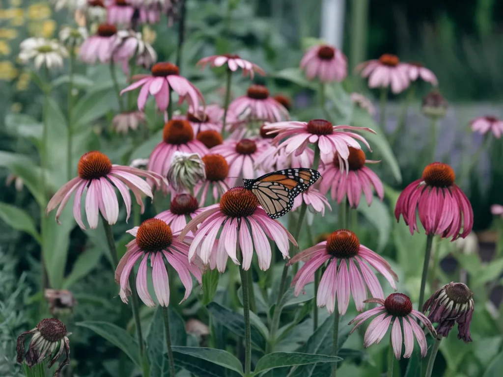 Butterflies, bees, and hummingbirds flock to coneflowers all summer long. And when the blooms finally fade in fall, leave the seed heads standing. Goldfinches and other birds will feed on those seeds through winter. So your “dead” coneflowers are still working for your garden even after the show is over.