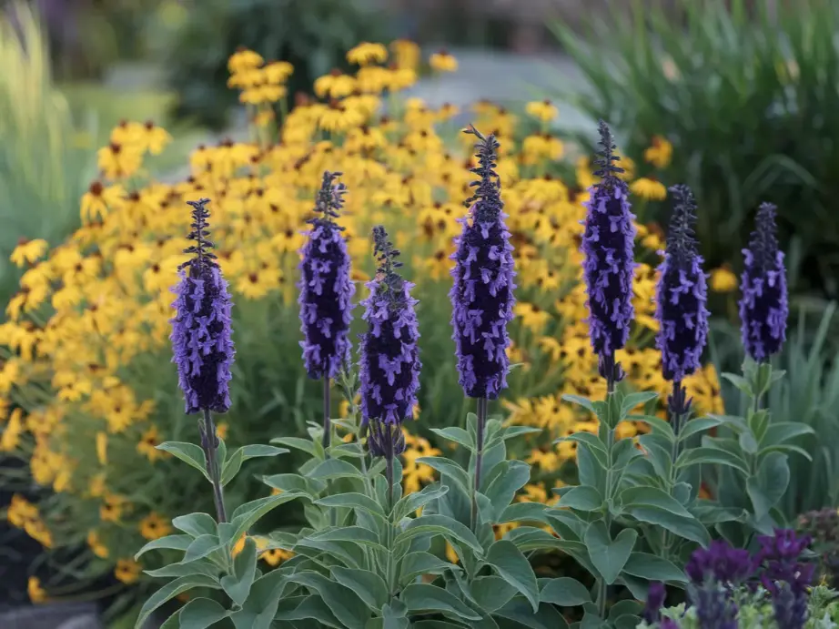 ‘May Night’ won the Perennial Plant of the Year award in 1997. Almost three decades later, it’s still one of the most recommended perennials by professional landscapers and garden designers. The deep purple color is a perfect complement to yellows like Black-Eyed Susan and warm oranges like blanket flower. Planting them together creates that classic, magazine-worthy garden color scheme.