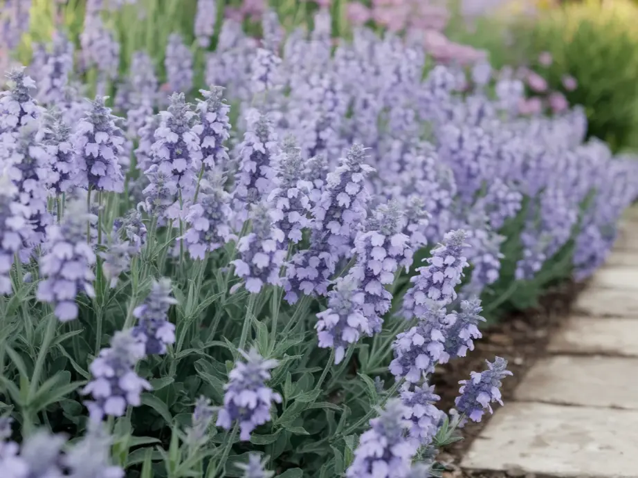 The aromatic foliage naturally repels deer, rabbits, and most insect pests. It handles drought, heat, and poor soil. Hardy in Zones 4 through 9, it grows about 18 to 24 inches tall and looks incredible planted in groups of three or five for maximum impact.