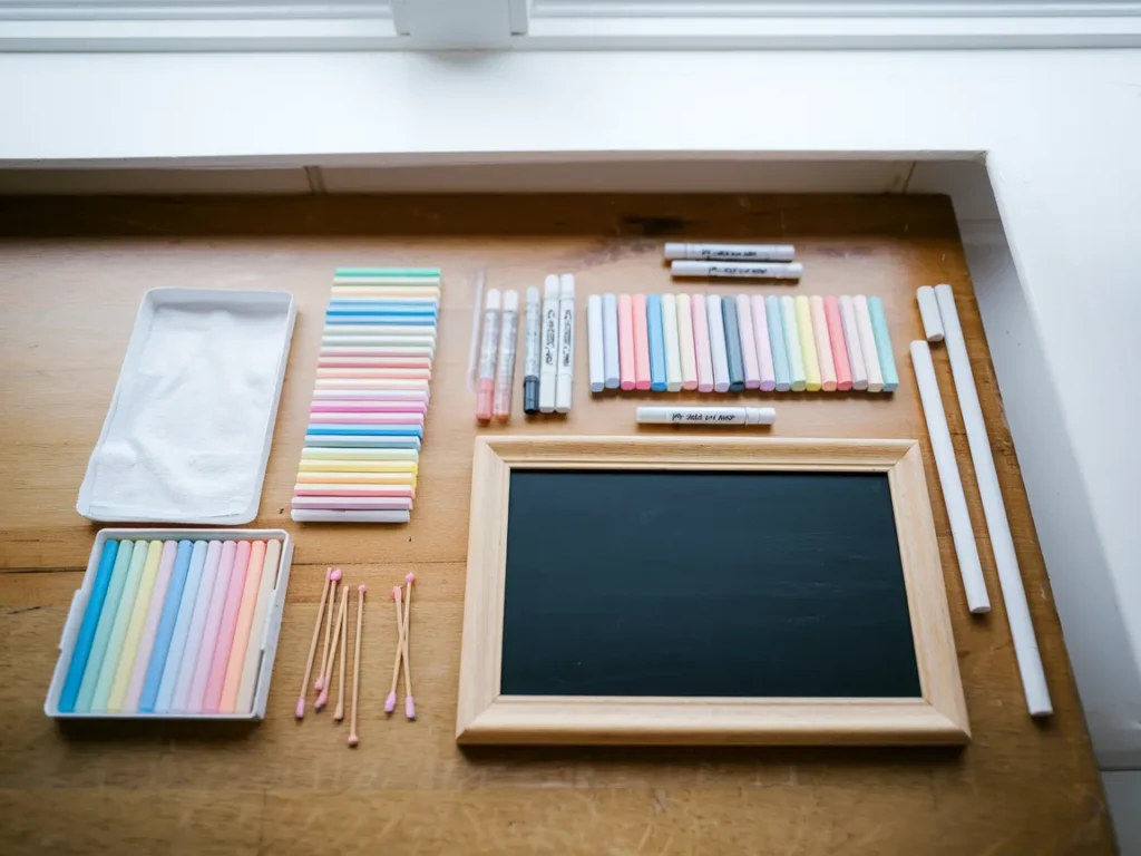The best part? If you mess up, you just wipe it clean and start over. No pressure. No waste. Just chalk, a board, and whatever your imagination feels like creating today.