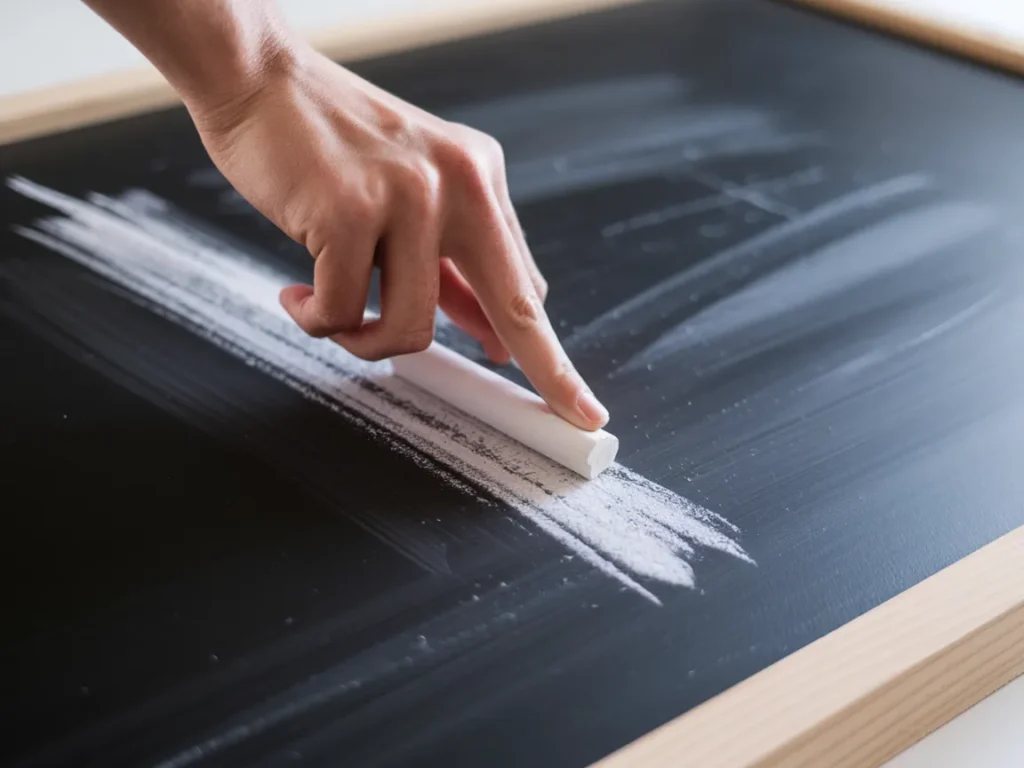 Before you draw anything, season your chalkboard. Take a piece of white chalk and rub it sideways across the entire surface. Then wipe it off with a dry cloth. This creates a thin chalk base layer that prevents “ghosting.” Ghosting is when old designs leave faint marks that won’t erase completely. Seasoning stops that from happening.