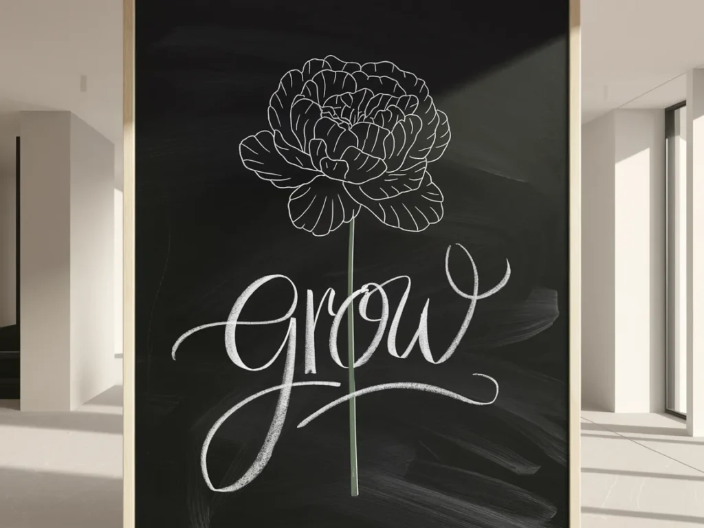 Not every chalkboard needs to be busy. Sometimes, the most stunning boards are the simplest. A single large flower drawn in white chalk. One word like “Breathe” or “Grow” in elegant script. A single line drawing of a butterfly with long, flowing wings. Minimalism can make your board feel modern, clean, and incredibly intentional.