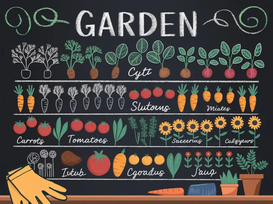 Add little drawings next to each plant name. A tiny carrot for the carrot row. A cute tomato for the tomato section. Small leaf doodles between entries. These little illustrations give your board a storybook feel that’s charming and practical at the same time.