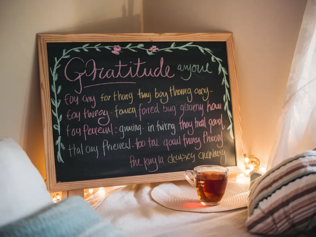 Studies from positive psychology research suggest that practicing daily gratitude can improve overall happiness levels significantly. And writing it by hand on a chalkboard makes it more tangible than typing it into an app. There’s a physical act of picking up the chalk, thinking about what mattered that day, and writing it down. That small ritual carries real weight.